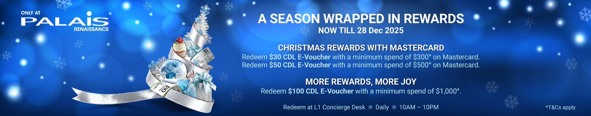 Festive moments at Palais Renaissance shine brighter with exclusive rewards. Click
