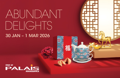 Terms & Conditions: Only valid with original receipts from Palais Renaissance tenants on retail floors, maximum of 3 combined same-day receipts. Receipts can only be used once towards the redemption. *Limited to the first 500 redemptions respectively. While stocks last. Other Terms & Conditions apply. Click